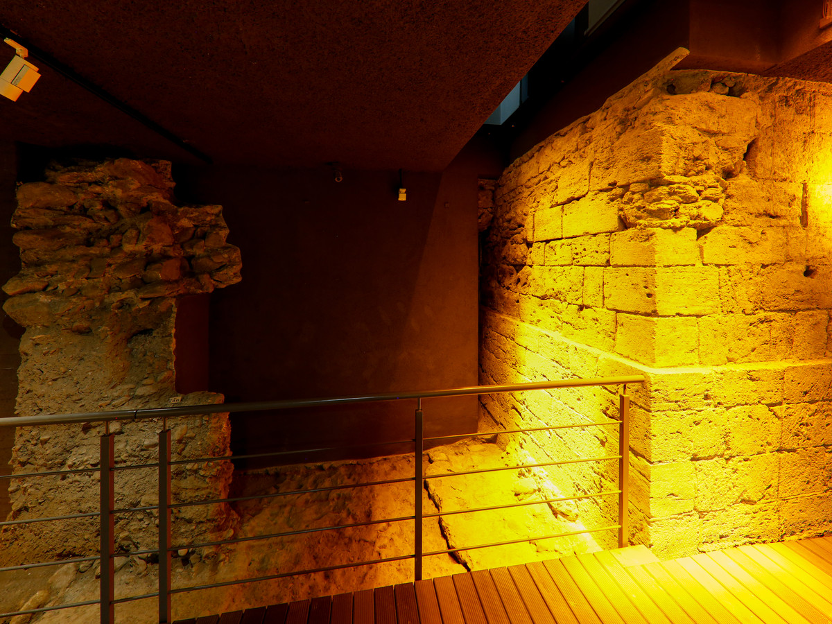 Dans les souterrains du Musée Archéologique Régional (ex couvent de la Visitation) il est possible d’observer les vestiges du coin sud-est de cette tour, avec les plans utilisés par les romains, une partie du terre-plein et du mur de contrescarpe encore adossé à une partie des remparts romains.