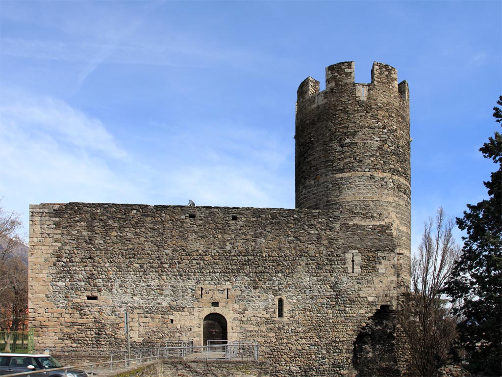 Inicialement la tour fut propriété des nobles de Challant qui, avec la charge de vicomtes d’Aoste, contrôlaient les murs d’enceinte de la façade sud ouest et qui, après avoir reçu en 1295 le fief de la vallée de Challand, devinrent la famille la plus importante de la noblesse valdôtaine.
