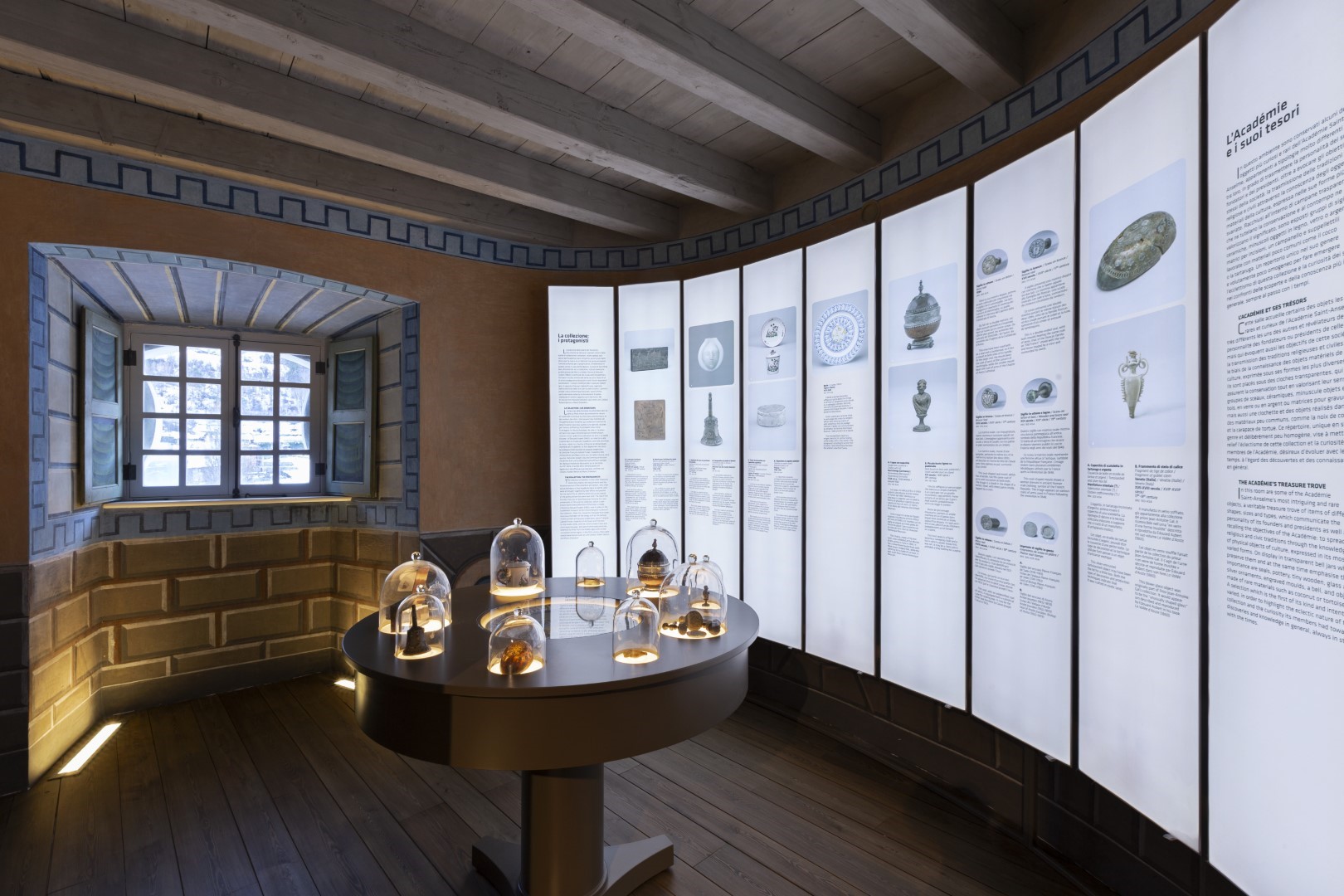 - Niveau III – les salles de Madame Giovane et la collection de l’Académie Saint-Anselme : l’exposition partage l’espace avec les témoignages de la vie quotidienne au château au XIXe siècle