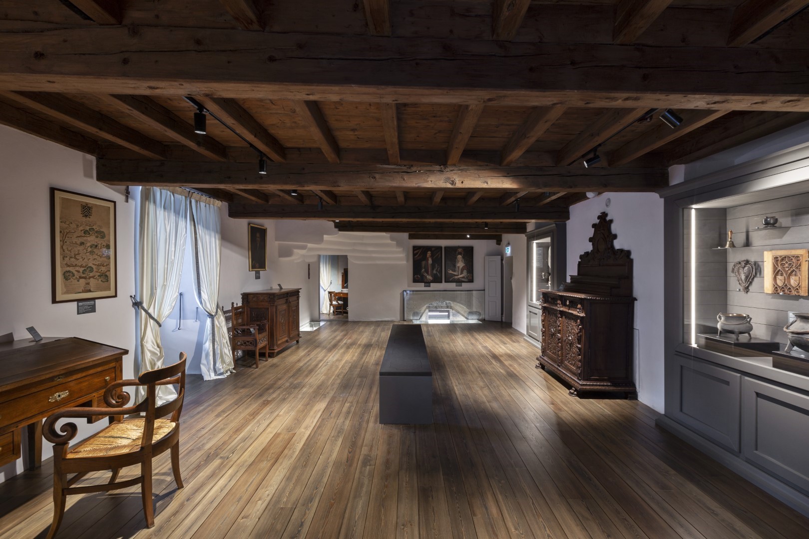 - Niveau II – le collectionnisme du XIXe siècle, de Vittorio Cacherano della Rocca Challant à la collection de l’Académie Saint-Anselme : au premier étage, le grand salon représente la jonction entre l’histoire du château et la naissance de la collection de l’association culturelle valdôtaine au XIXe siècle, à laquelle sont consacrées toutes les salles de cette section