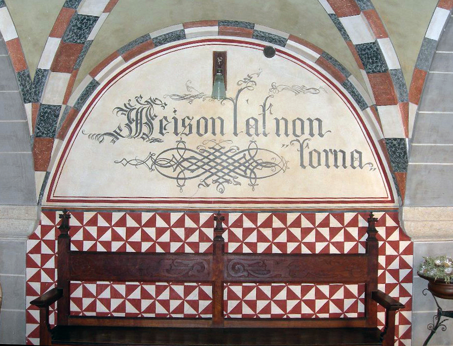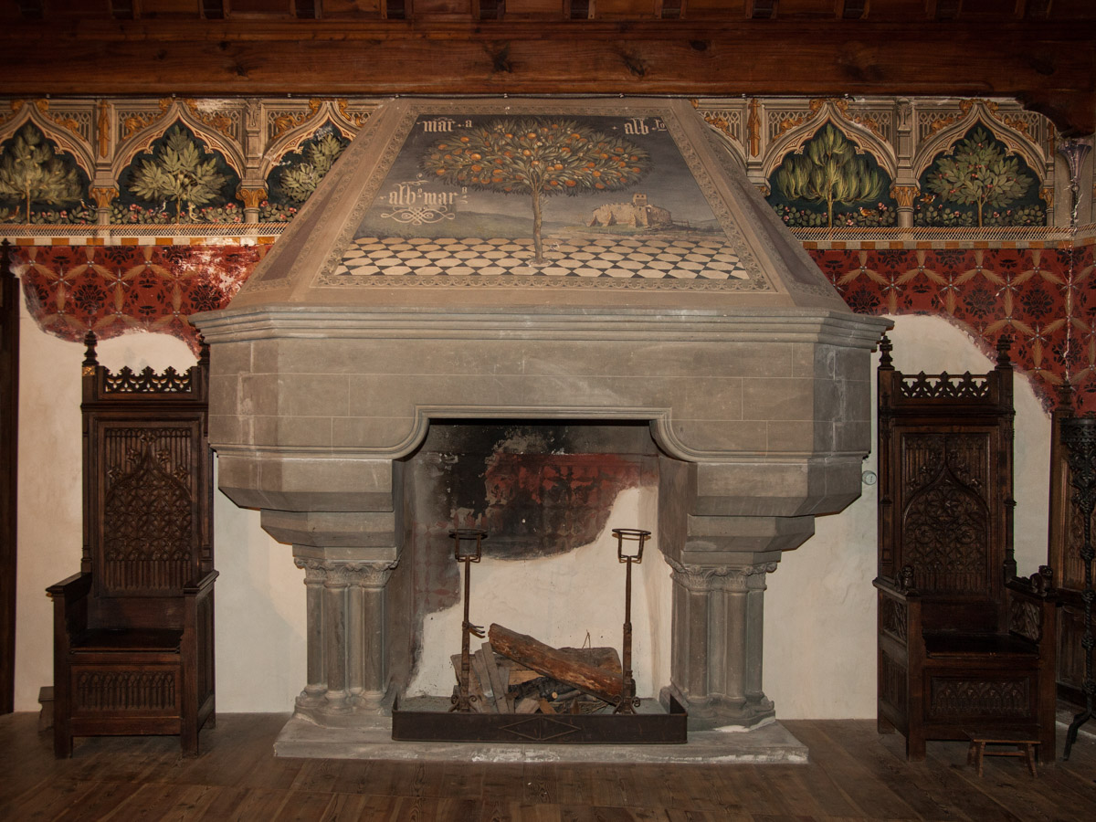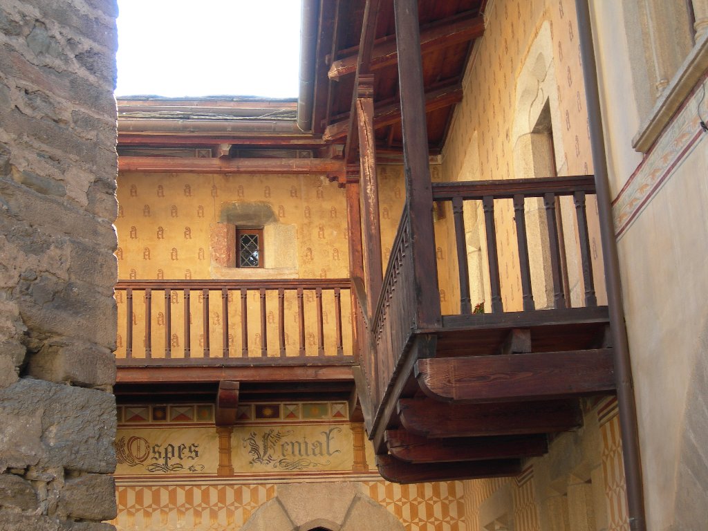 Sur l’esplanade en face du château, on peut voir une magnifique structure, un exemple rare de construction entièrement en bois, caractéristique de l’architecture du début du Moyen Âge dans la région : un grenier du quinzième siècle qui servait au stockage du blé et des graines. A travers une petite porte pourvue d’une intéressante serrure gothique qui représente un château médiéval richement crénélé, on accède aux deux salles munies de meurtrières, situées dans le sous-sol et aujourd’hui complètement enterrées.
