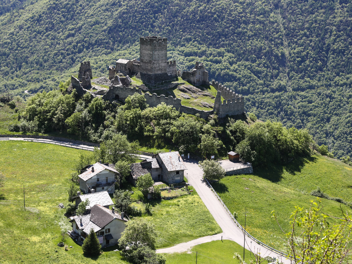 Érigé sur un rocher en altitude surveillant le fond de la vallée, dans une zone ayant été occupée dès l’époque protohistorique (Age du Bronze et du Fer), ce manoir appartient, à juste titre, à la catégorie de « châteaux primitifs » en vertu de son puissant donjon édifié au cours des trente premières années du XIème siècle et de sa chapelle champêtre dédiée à Saint Maurice, véritable joyau de l’architecture romane.