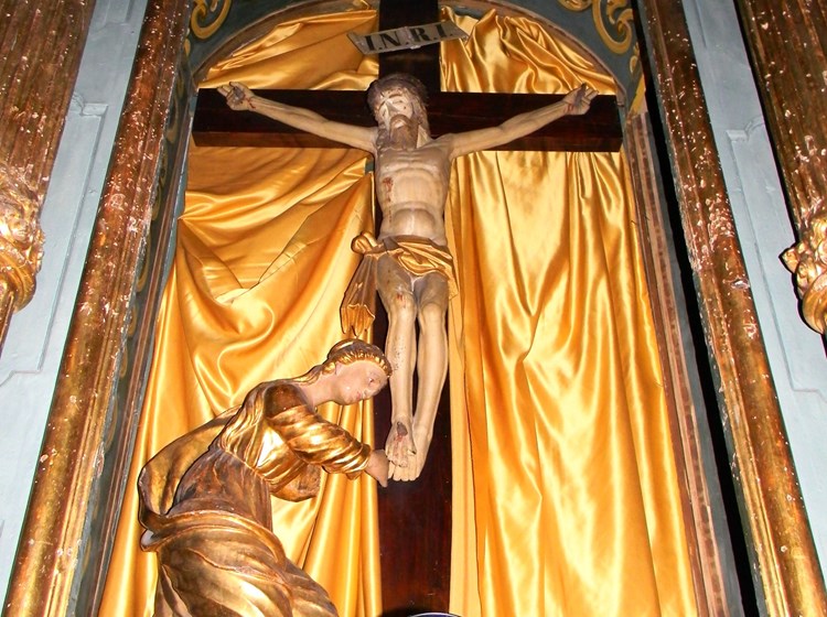 L’intérieur contient divers meubles anciens d’une époque qui va du XVIIe au XIXe siècle. Le somptueux maître-autel dans le style baroque Valsésien est probablement dû à la générosité du prieur de Saint Ours Charles-Hyacinthe Beltram, qui en 1737 fit d’importants donativa à la Confrairie.