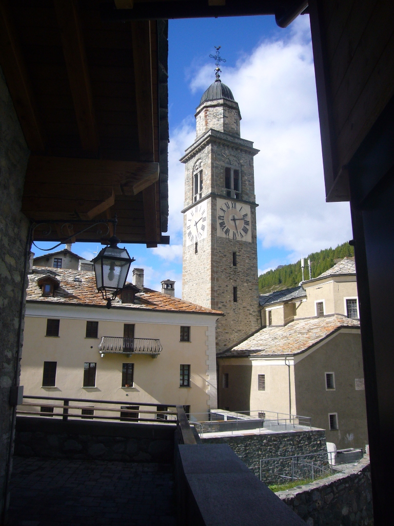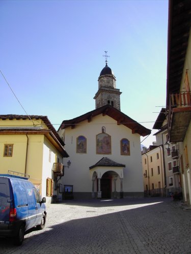 La paroisse est placée sous la protection de Saint Ours, prêtre valdôtain vécu entre le VII et le VIIIème siècle, que la tradition populaire affirme avoir bonifié les lieux, qui n’étaient pas hospitaliers à l’origine. Un rôle important dans ce sens fut sûrement joué par les moines de la collégiale d’Aoste de Saint Ours, dont la paroisse dépendait déjà en 1184. Les moines détinrent la paroisse jusqu’en 1820, année de son passage à l’évêque.