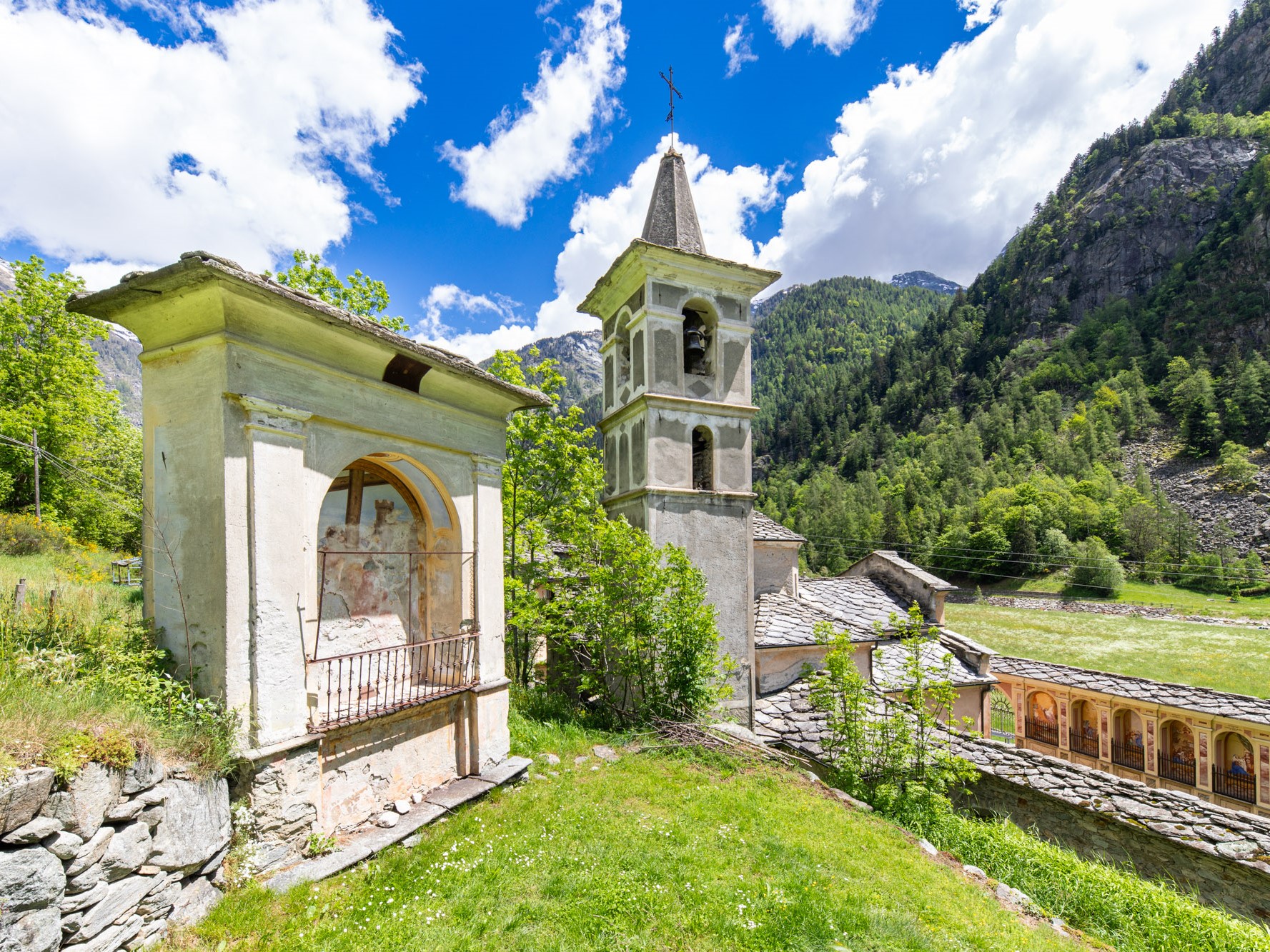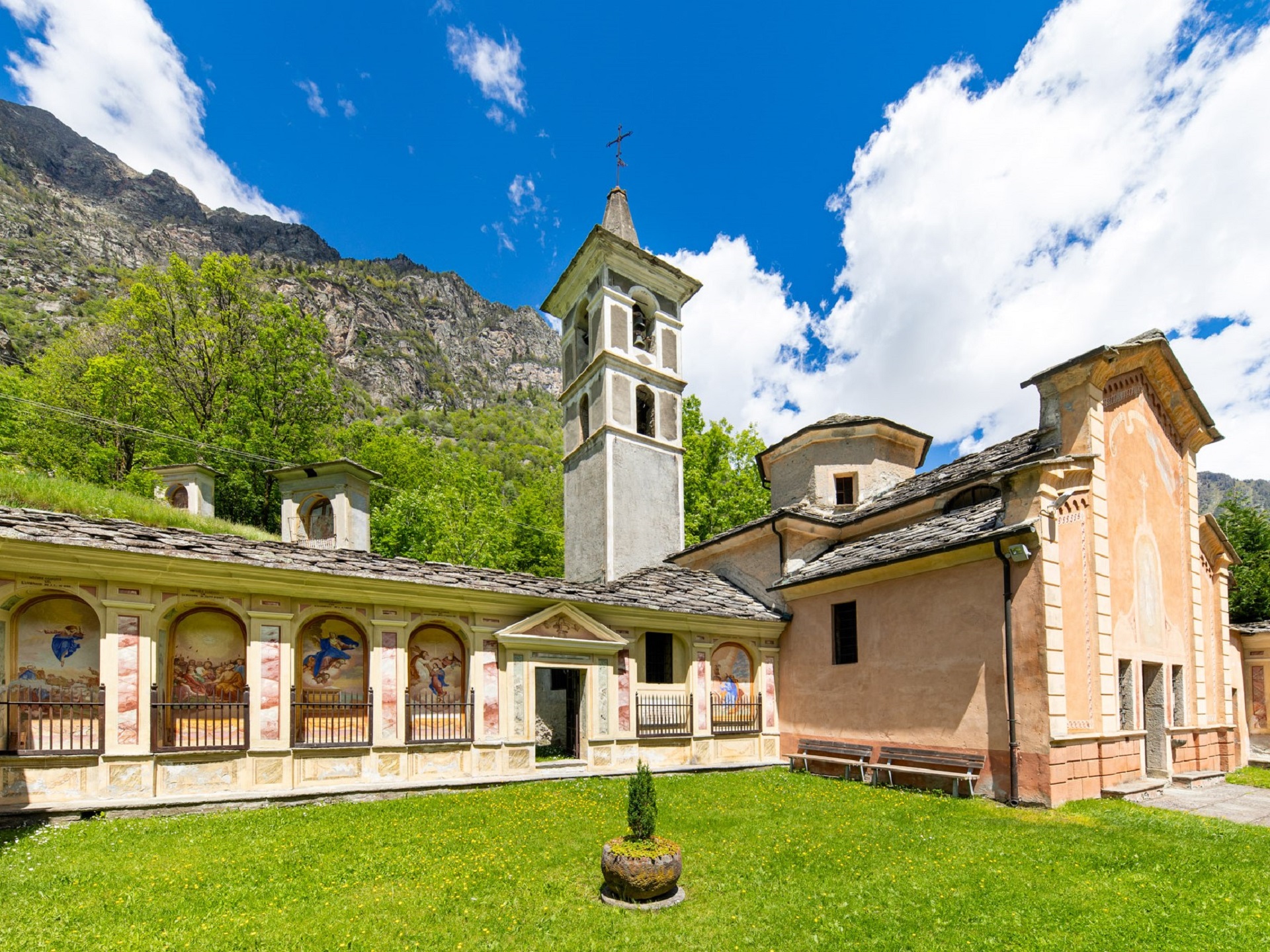 Dédié à la Vierge des Grâces, il devint un lieu de pèlerinage, célèbre surtout à partir de 1833, date à laquelle il fut transformé en Sanctuaire. Au début, il s’agissait seulement d’une chapelle ornée de deux autels et un clocher. Après une avalanche, de laquelle il sortit indemne, Jean Pantaléon Tousco, fit vœu à la Vierge d’ériger sur le lieu de l’incident un Sanctuaire ; il fut entouré par quatorze stations du Chemin de la Croix peintes par Francesco Curtaz, sur le modèle du Calvaire de Varallo Sesia.