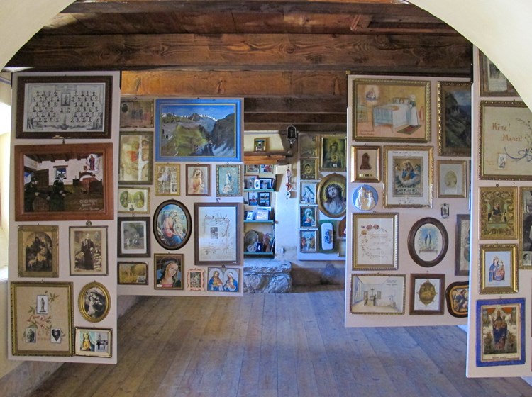 Il fut décidé en 1656 d’y édifier une chapelle qui fut consacrée le 26 juillet 1659 à Notre-Dame des Neiges. Le bâtiment actuel, reconstruit en 1861, a une base rectangle avec une voûte croisée décorée et un abside en demi-cercle. Une peinture est placée au-dessus de l’autel, réalisée en 1825 par le peintre valdotain Curta. Elle représente la Vierge à l’enfant et les saint Hilaire, Bernard, Bartolomé et Eusèbe. Les murs sont couverts d’ex-voto de différents genres, parmi lesquels certaines intéressantes peintures du dix-huitième et dix-neuvième siècle. Citons la remarquable statue de la Vierge à l’enfant, qui date du XVI ou XVIIème siècle, et est peut-être contemporaine de la construction du premier sanctuaire.