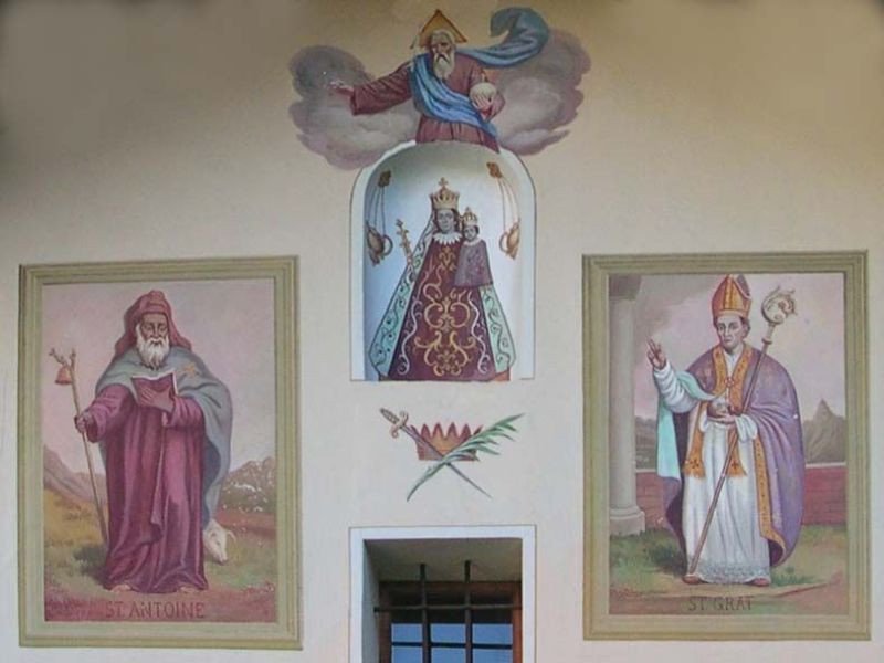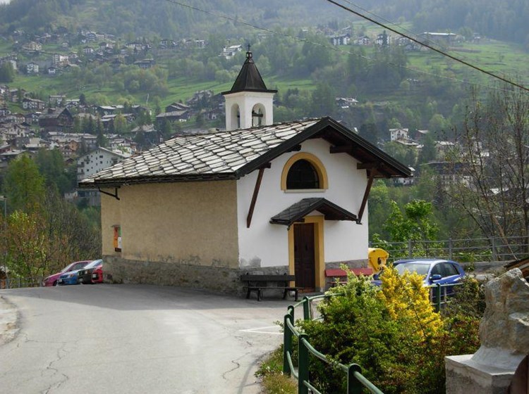 Crépin - fondée en 1694 par Giovanni Ménabreaz, elle est dédiée à Saint-Crépin et Saint-Crespin. Le petit portique situé à l’entrée a été décoré de fresques par Tantardini (1948) avec les images de la Sainte Famille, de Saint Téodule avec le démon et la cloche et de Saint-Crespin avec ses outils de travail.