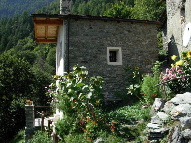 Euillaz - située sur les hauts pâturages de Valtournenche, elle est accessible en une heure de marche au départ de Champlève. La date de 1860 est gravée sur la poutre. Elle est dédiée à la Madone de la Salette, représentée sur la fresque de la façade.