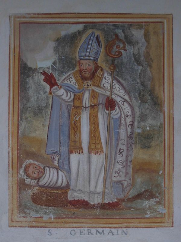Mont-Mené – elle se trouve dans un petit village, perché sur un promontoire rocheux à droite de la plaine de Maen, accessible en une demi-heure de marche et qui n’est plus guère habité une grande partie de l’année. Fondée en 1747 par Antonio Hosquet et dédiée à Saint Germain et à Saint Grat, représentés sur la façade.