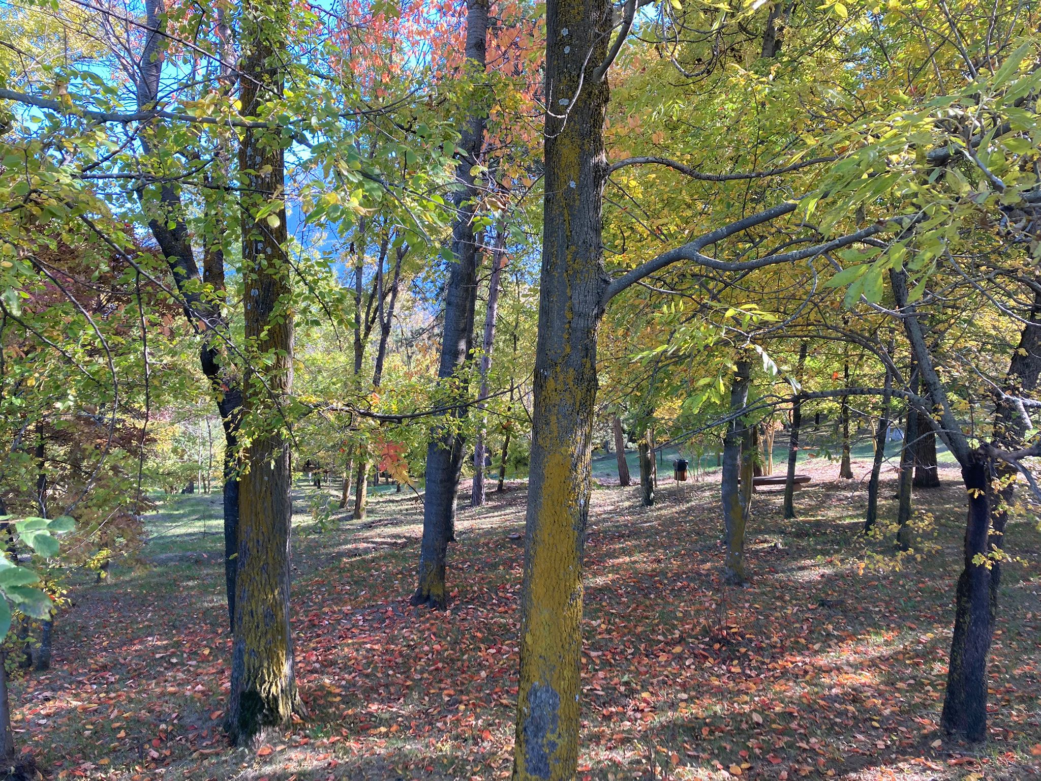 Dans cette aire boisée se trouvent un grand nombre de variétés d’arbres autochtones et exotiques : sapins rouges, mélèzes, pins sylvestres, pins noirs, douglas, cèdres, cerisiers, hêtres, ormes, érables, chênes, noyers, bouleaux, peupliers, châtaigniers, sureaux noirs, poiriers et pommiers sauvages etc.
