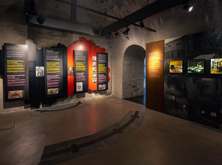Le thème de la montagne militarisée est abordé dans les sections dédiées à la Première et à la Deuxième guerre Mondiale et à la Résistance, tout en mettant l’accent sur l’impact évocateur d’une approche multimédia.