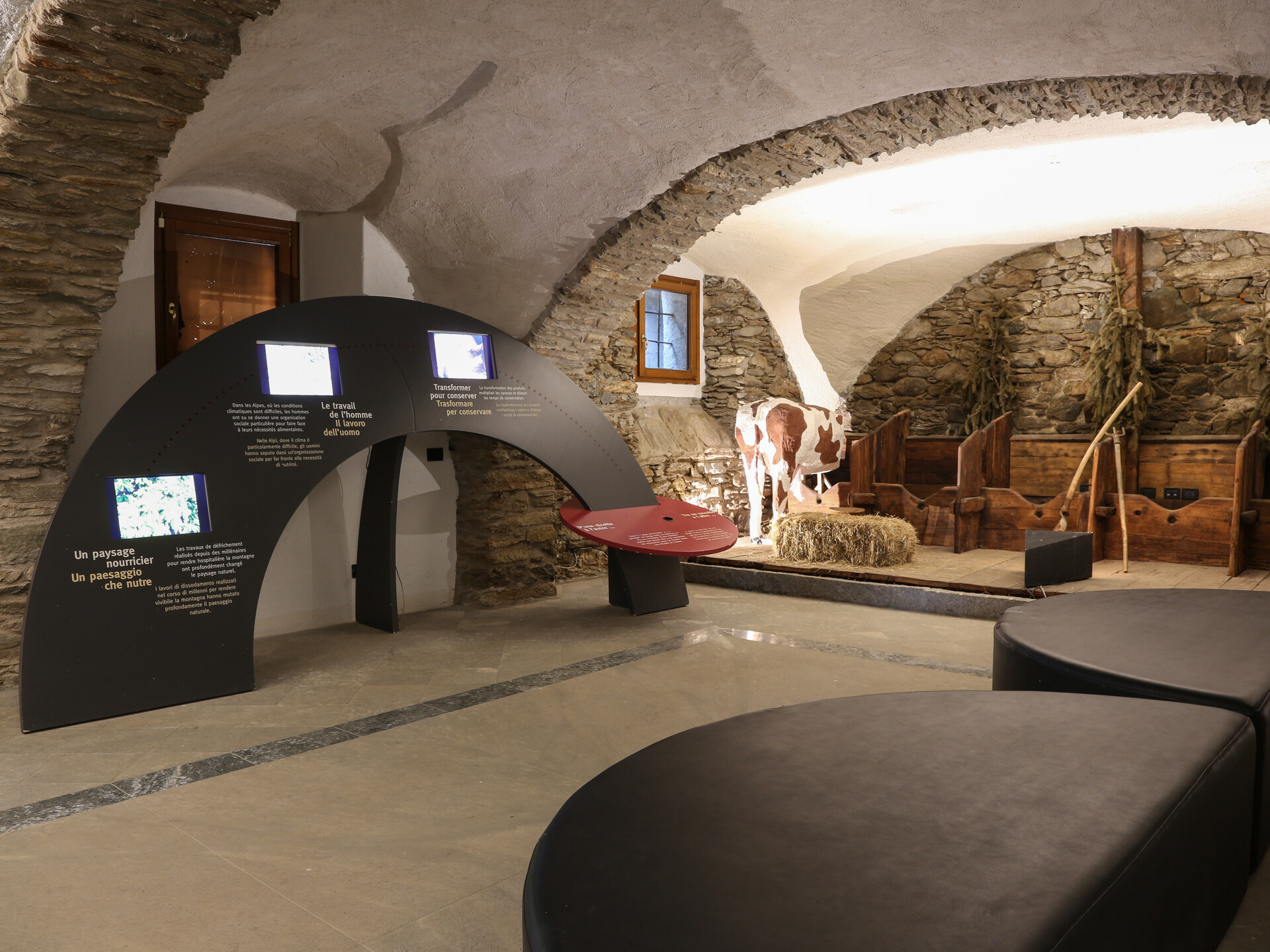 La Maison Bruil présente aussi une exposition permanente sur l’alimentation, un parcours esquissé par les témoignages verbaux enregistrés à partir de 1980 dans plusieurs communes de la Vallée d’Aoste.