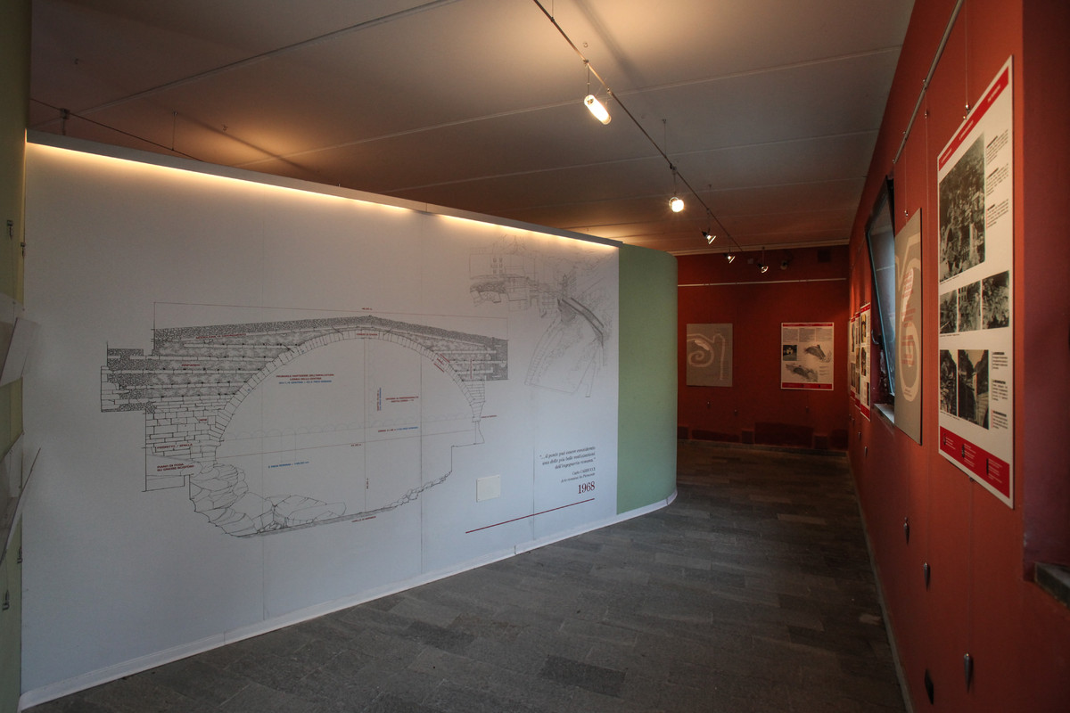 Une intéressante série de photographies, de dessins et de documents permet de satisfaire toute curiosité concernant le “Pont du Diable”: les matériaux utilisés et la technique de construction, les légendes dont le pont a été le protagoniste, la restauration au dix-neuvième siècle, le bombardement allié d’août 1944 qui l’a miraculeusement épargné.