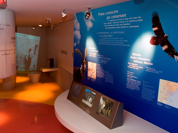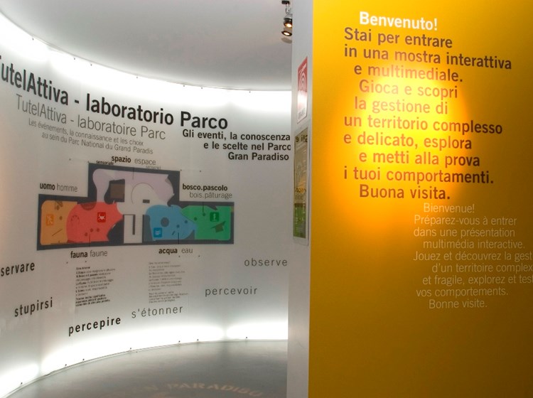 Le centre visiteurs du Parc national du Grand Paradis de Cogne Laboratoire Parc présente l’évolution complexe et dynamique de la zone protégée comme dans un laboratoire d’expérimentation : maquettes d’explication, systèmes multimédias, jeux interactifs et un original “espace sensorie” qui offre aux visiteurs la possibilité d’apprécier les parfums de la nature et de sentir les sons caractéristiques des bois.