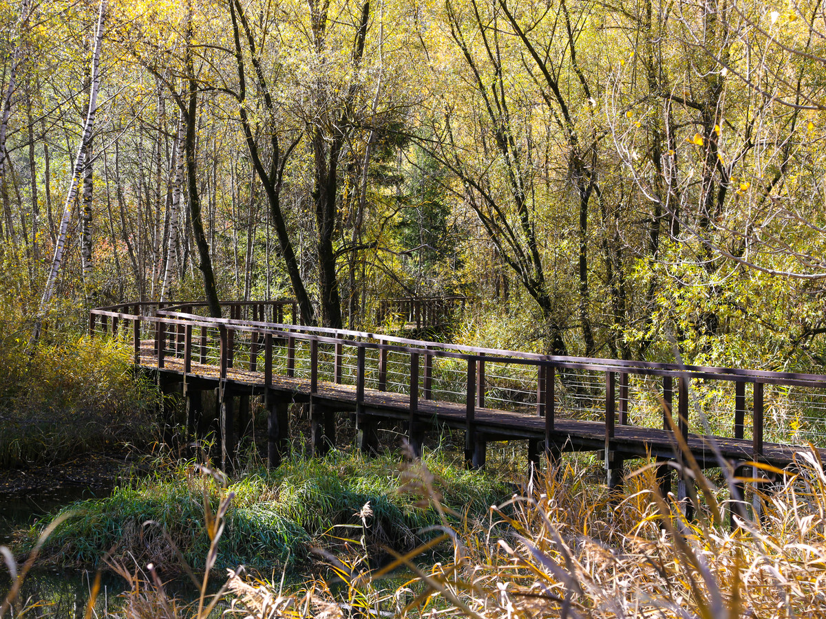Sur la rive droite, on trouve une autre cabane d’observation de la faune, mais le parcours est plus court et moins sinueux.