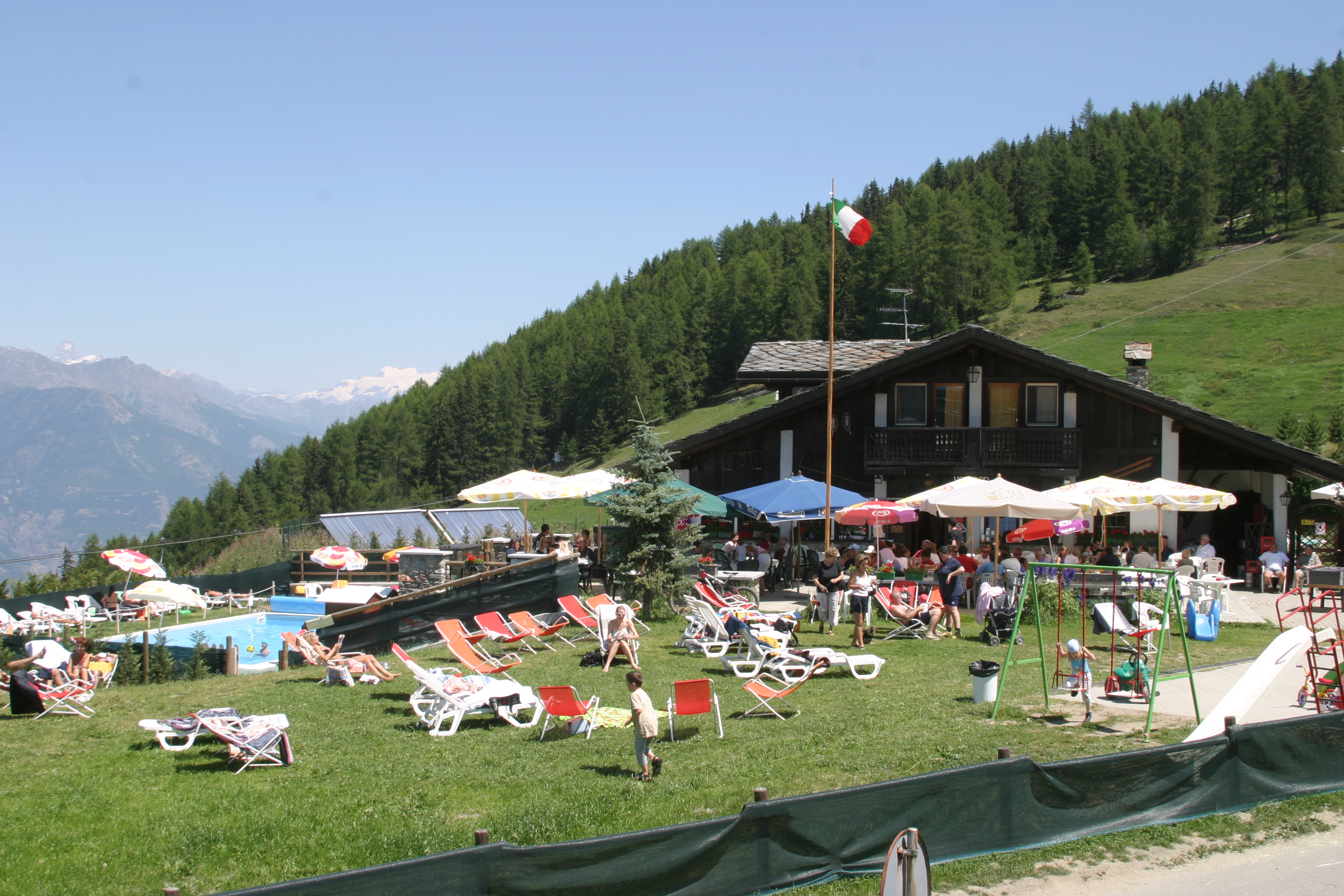 Piscine en plein air chauffée. Ouvert en juillet/aout de 10h00 à 19h00, si les conditions météorologiques le permettent.
