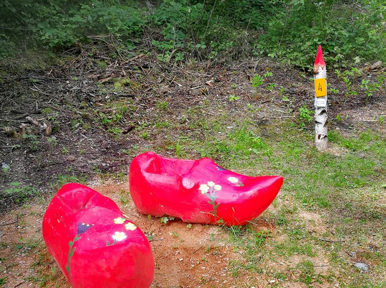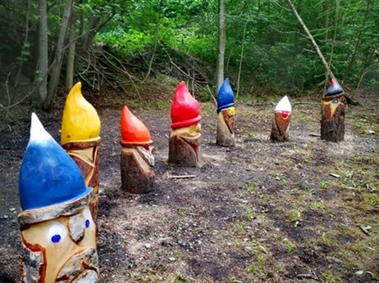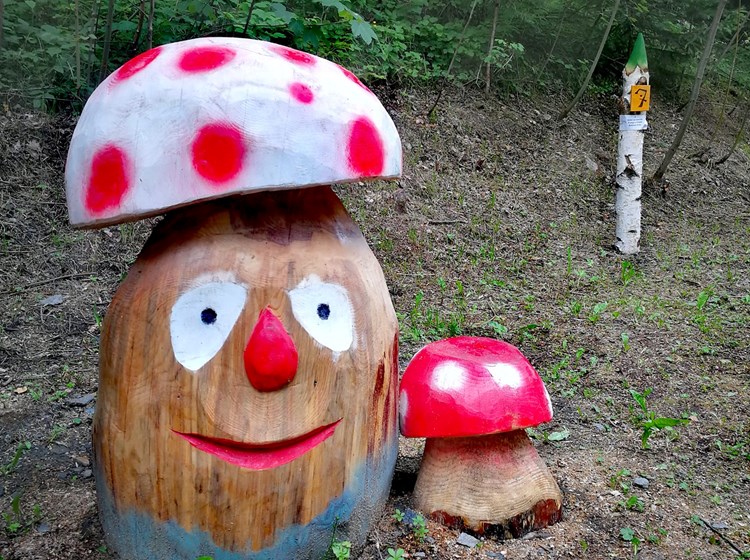 Si incontrano sculture con gnomi, funghi, zoccoli, ma anche un albero sonante, un labirinto letterario e un originale tirassegno. Le opere sono state realizzate appositamente dall'artista Eliseo Lumignon.