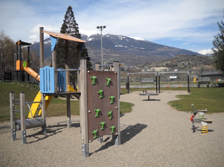 Il parco giochi è situato all’interno della magnifica area verde della Grand-Place, 7 ettari di verde, da dove è visibile la catena montuosa che circonda Pollein.