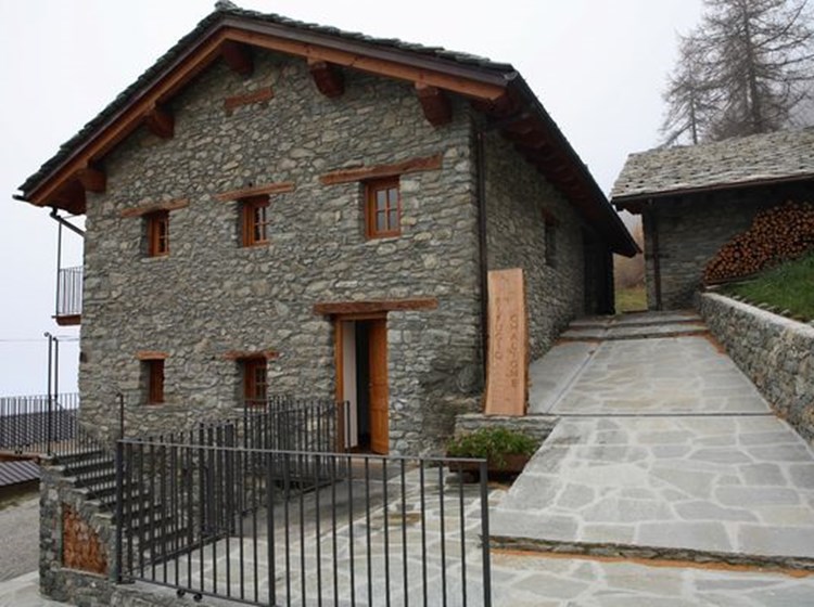 Il rifugio Chaligne è il risultato della ristrutturazione di una tipica baita di montagna in pietra e legno.