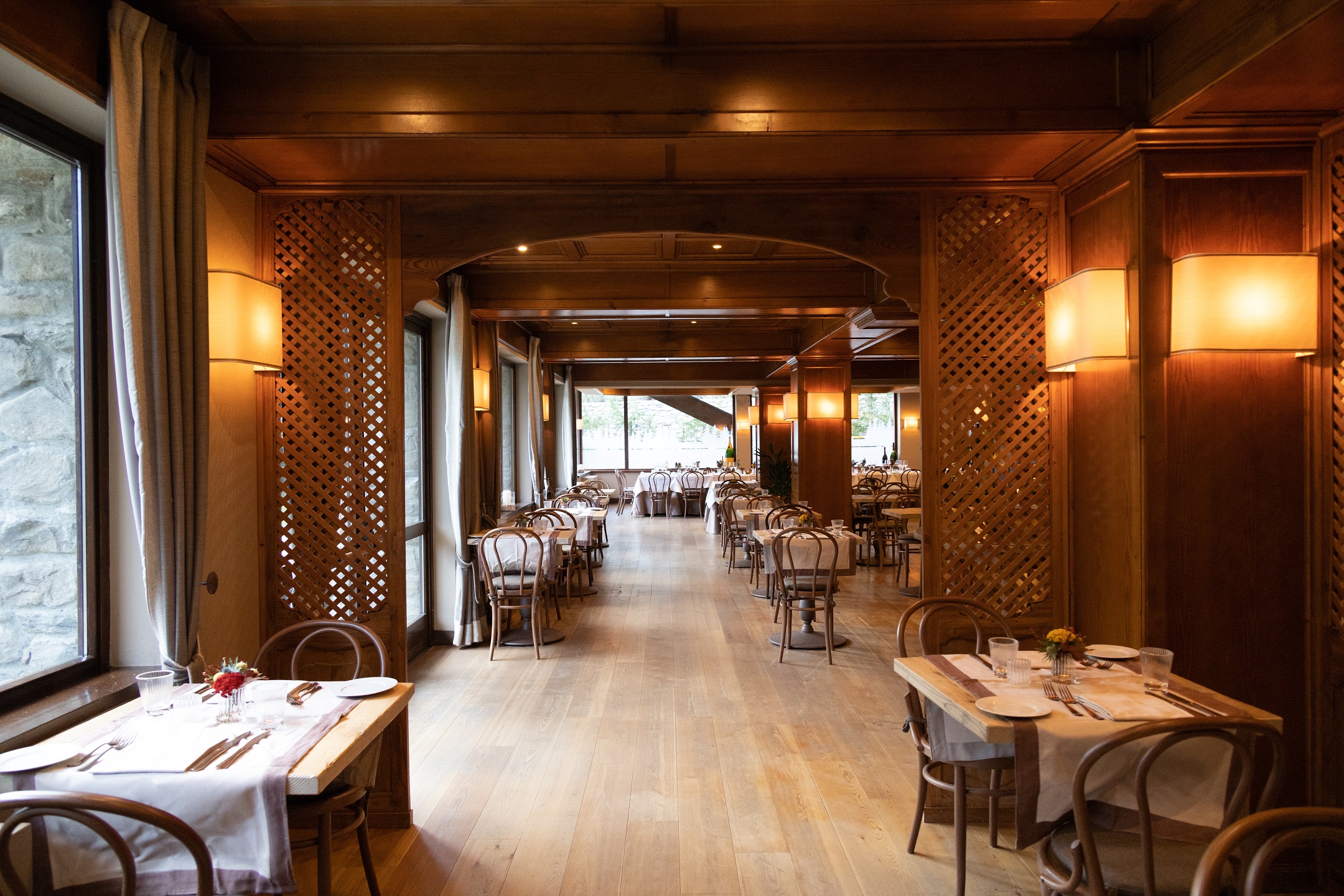 L'atmosfera di un raffinato chalet con vista sul Monte Bianco e l'eleganza degli arredi in stile alpine chic fa da cornice a romantiche cene a lume di candela.