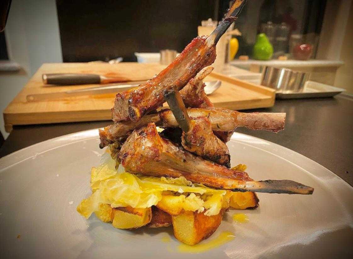 Un braciere a vista permette di seguire l’intero ciclo di preparazione dei piatti e di gustare carne e pesce alla brace.