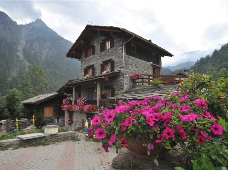 Edificio rurale in pietra e legno, ristrutturato mantenendo la tipologia e le caratteristiche delle tipiche case di montagna. Situato nella splendida vallata di Champorcher ai piedi del Parco Naturale de Mont Avic .