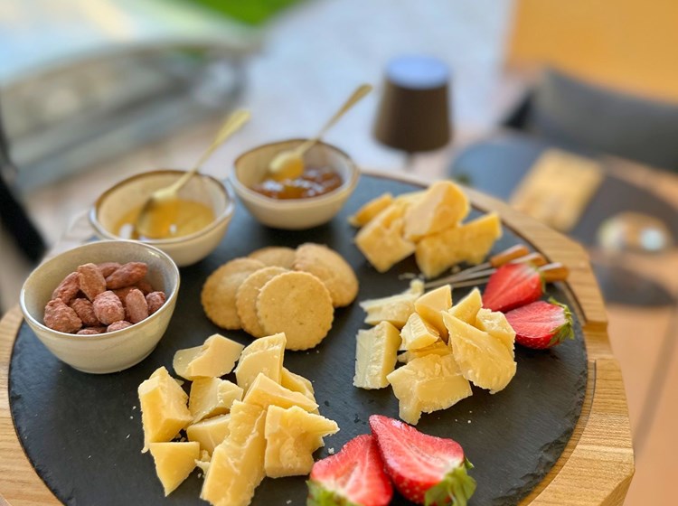 - Pane Sentatore Cappelli con mini tomino del boscaiolo e Jambon à la brace di Saint-Oyen e miele millefiori;