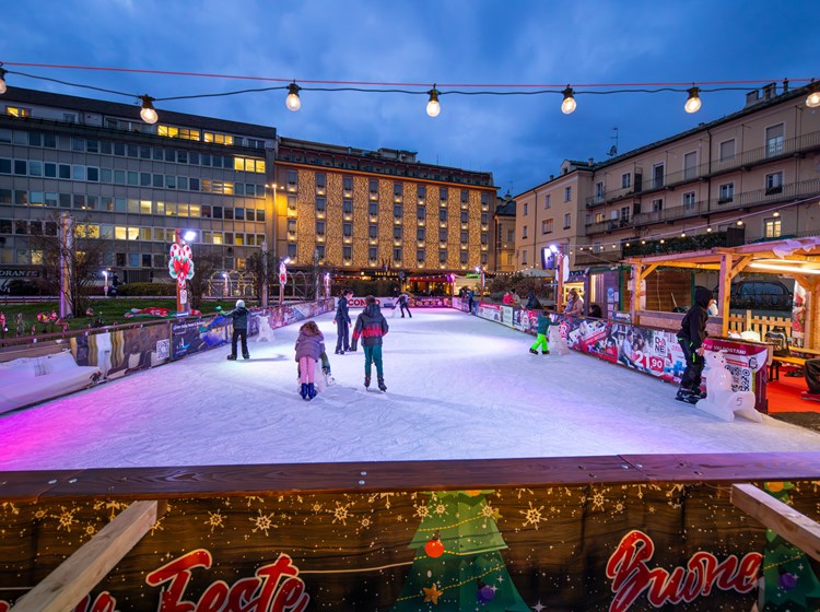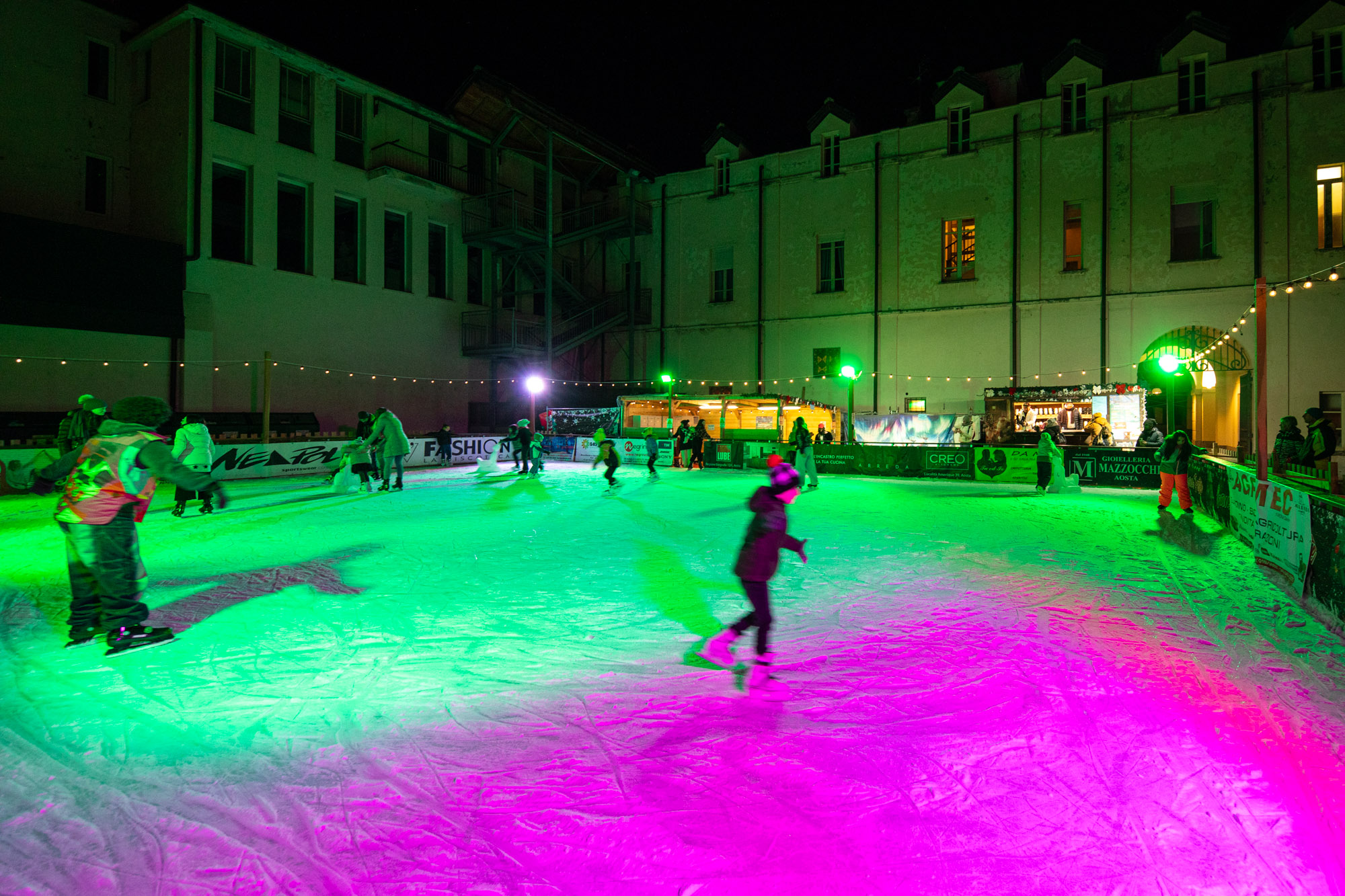 Durante le festività natalizie grandi e piccini possono divertisi pattinando sulla pista ghiacciata nel cuore della città di Aosta e a pochi passi dal mercatino di Natale. La pista è adatta a tutti con disponibilià di ausili per i neofiti.