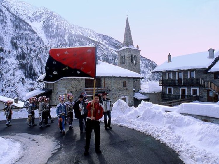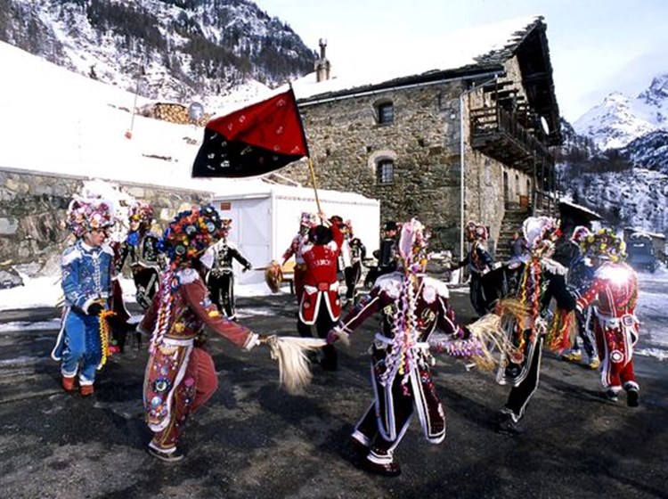 La tradizione lega la nascita del carnevale al passaggio di Napoleone attraverso il Colle del Gran San Bernardo, nel maggio del 1800, durante la campagna d’Italia. I costumi sarebbero dunque la trasposizione allegorica delle uniformi dei soldati francesi. Ritroviamo inoltre l’orso che rappresenta l’avvicendarsi della primavera; le code dei muli, che rappresentano i venti e servono per allontanare le correnti d’aria nefaste; gli specchi sui costumi, che devono scacciare gli spiriti maligni; il colore rosso, che simboleggia la forza e il vigore e che, anch’esso, ha il potere di esorcizzare i malefici e le disgrazie. Durante il corteo, le maschere visitano le famiglie; entrano nelle case, ballano nelle strade e nelle piazze, mangiano e bevono ciò che viene loro offerto.