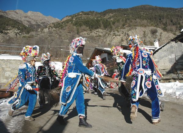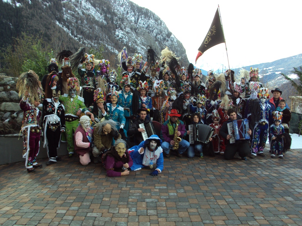 Ore 09.00: ritrovo della Benda (gruppo mascherato) in loc. Chozod (Albergo Le Lièvre Amoureux) e successiva visita alle frazioni di Thoules e Semon
