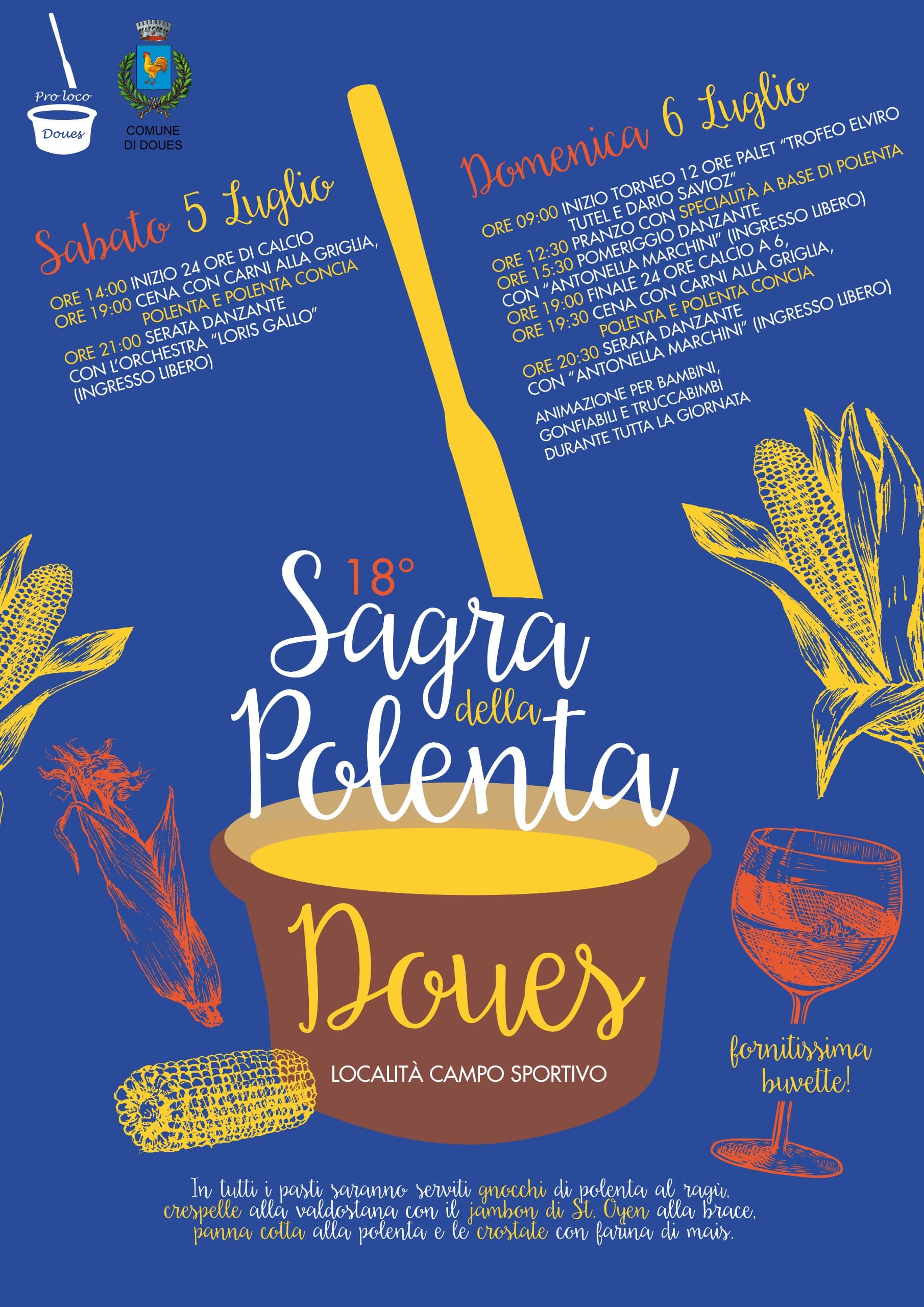 Durante tutti i pasti saranno serviti polenta, polenta concia, gnocchi di polenta al ragù, crespelle alla valdostana con il Jambon alla brace di Saint-Oyen e i dolci preparati con farina di mais.