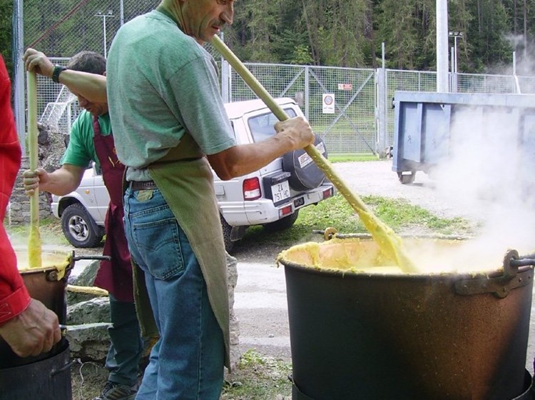 I cuochi di Saint-Oyen accompagnano il prosciutto alla brace con un piatto di fagiolini verdi o di polenta, in un’ atmosfera festosa e ricca di intrattenimenti.