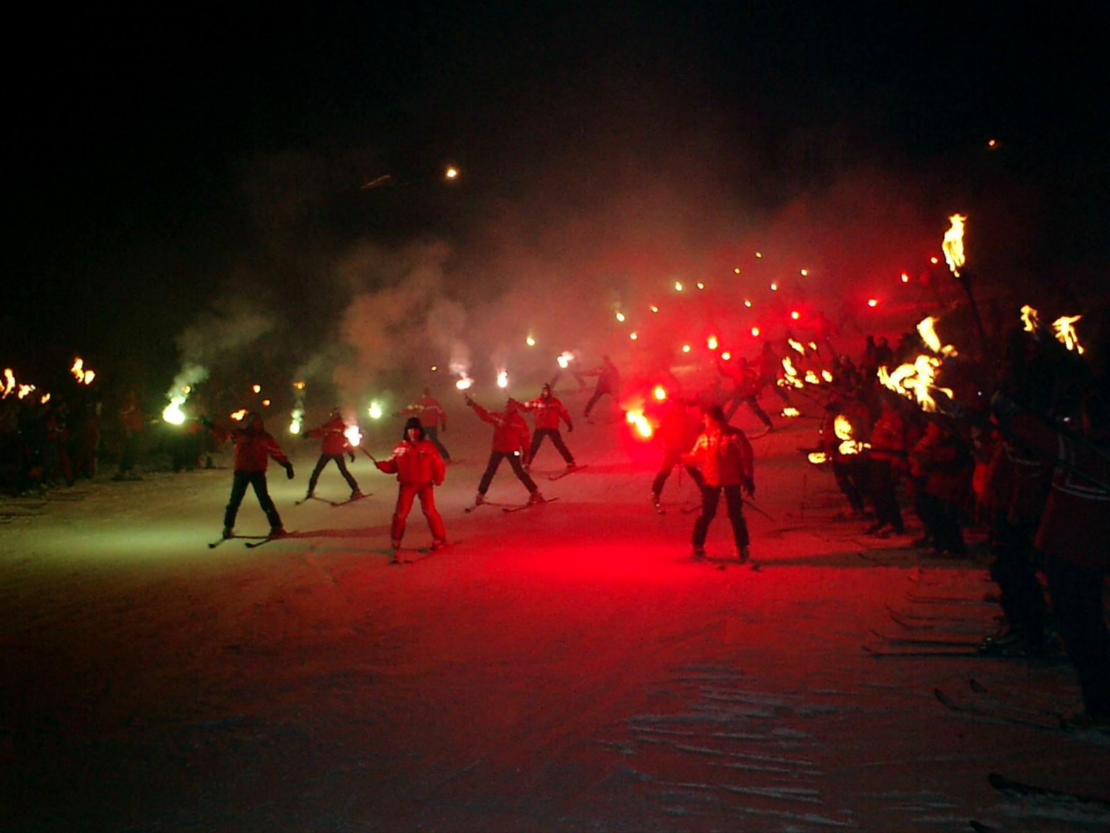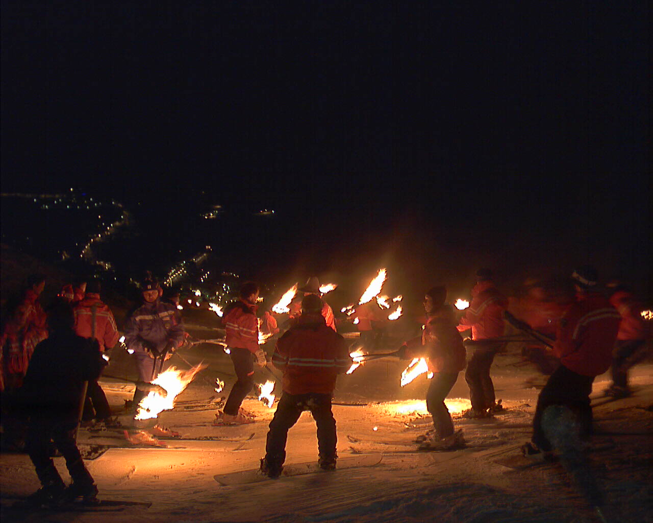 Tradizionale fiaccolata dei maestri delle scuole di sci di Breuil-Cervinia Valtournenche e delle guide alpine del Cervino e spettacolo piro musicale per dare il benvenuto al nuovo anno.