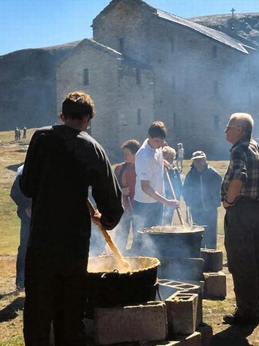 Nel frattempo pervengono al Santuario i pellegrini delle valli adiacenti: da Cogne, dalla Val Soana e da Fénis. Quindi il pranzo in comune, da sempre, anche nei periodi di maggiori ristrettezze, é uso che nella giornata del Miserin vengano consumati ed offerti ad amici e conoscenti i cibi più prelibati confezionati appositamente per l’occasione: insaccati, formaggi, dolci, carni e liquori.