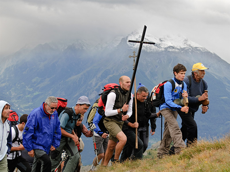 La processione di Chaligne, conosciuta anche come processione della Fourclaz, prevede due cortei che hanno uno sviluppo distinto e che condividono la celebrazione della messa in vetta, a m 2608). Infatti la comunità di fedeli di Gignod, e quella delle frazioni di Aosta e Excenex si incontrano al cosiddetto “Plan des Débats” per raggiungere insieme Punta Chaligne.