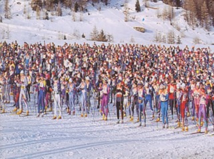 Dal prato di Sant’Orso di Cogne, il lungo serpente multicolore dei partecipanti della Marciagranparadiso si allunga lungo i 40 km di una tra le più famose competizioni di gran fondo a tecnica classica italiana.