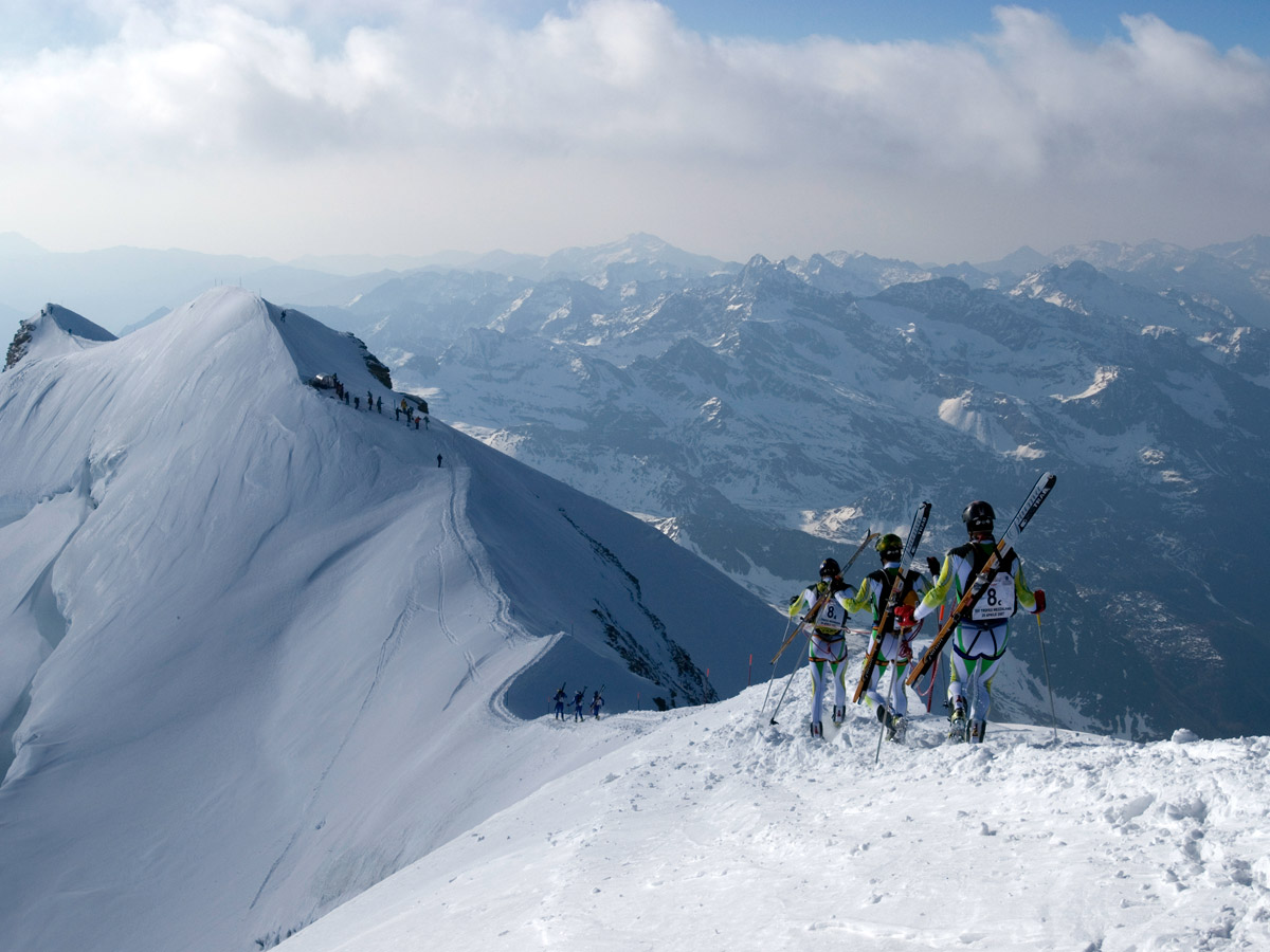 La famosa “maratona dei ghiacciai” del Monte Rosa, da Breuil-Cervinia a Gressoney-la-Trinité, chiude la stagione delle gare internazionali di scialpinismo ed è prova unica di Campionato Mondiale ISMF Long Distance e finale di La Grande Course, il circuito delle gare scialpinistiche più esclusive di tutto l’arco alpino e della Cordigliera Pirenaica.