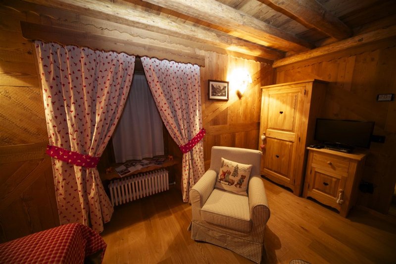 Le camere hanno un arredo tipico montano molto curato e sono dotate di bagno privato con doccia idromassaggio ed asciugacapelli, televisore LED schermo piatto con canali satellitari.