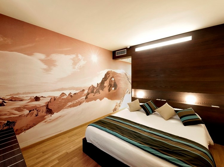Le camere godono di una piacevole vista sulle vette che le circondano e sui romantici e antichi tetti in pietra del centro storico di Aosta. La perfetta insonorizzazione delle stanze garantiranno il vostro riposo durante la vacanza, mente e corpo potranno rigenerarsi in un centro benessere davvero sorprendente.