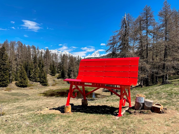 Nell’inverno 2021 è stata inaugurata la prima “grande panchina” della Valle d’Aosta, la n° 125 del circuito delle Big Bench. Si raggiunge con una tranquilla passeggiata adatta a tutti, sia in estate che in inverno.