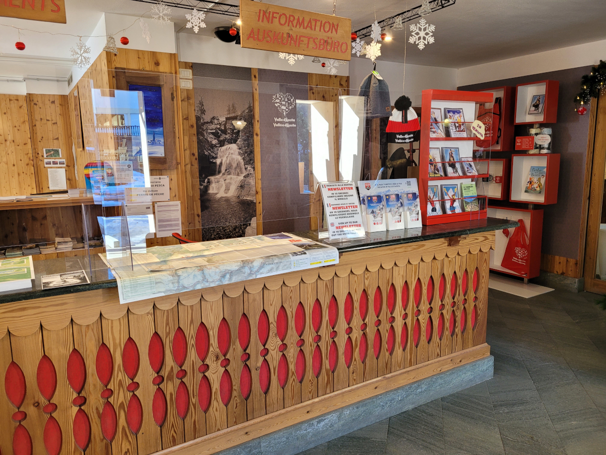 - Vendita di cartine escursionistiche della Valle d’Aosta e di gadgets con il logo turistico;