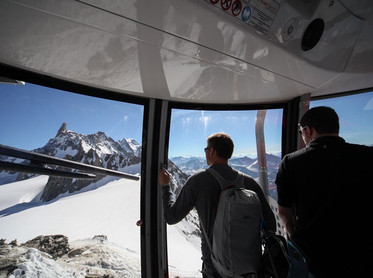 Una volta in vetta, durante l'estate, da non perdere il giro in cabinovia Panoramic Mont Blanc sul ghiacciaio fino alla stazione francese Aiguille du Midi (3777 m).
