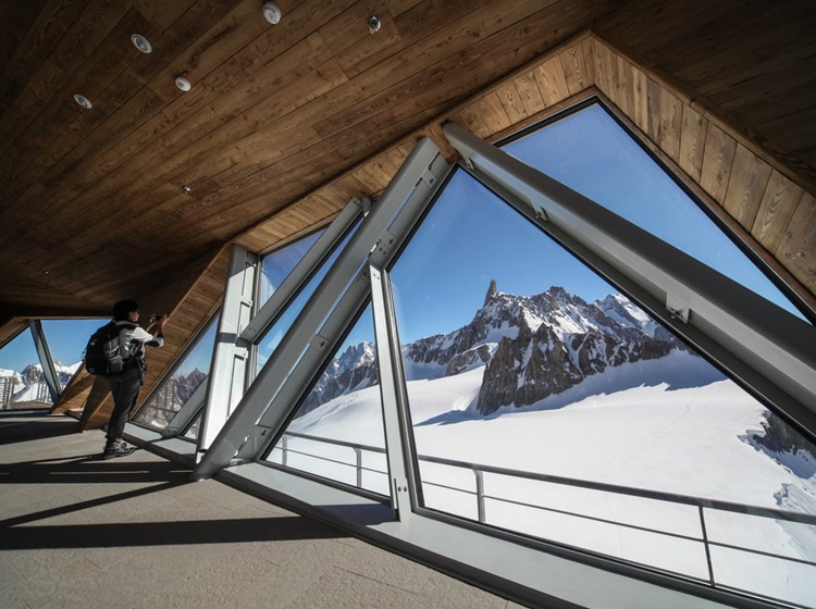 Mont Blanc Infinity Room, un piccolo rifugio tecnologico dove splendide immagini ti fanno vivere il sogno della montagna per 9 minuti di esperienza immersiva. Puoi acquistare il biglietto online insieme a quello per la funivia.