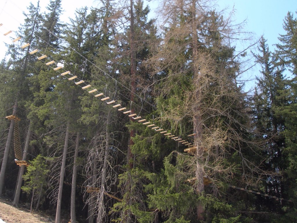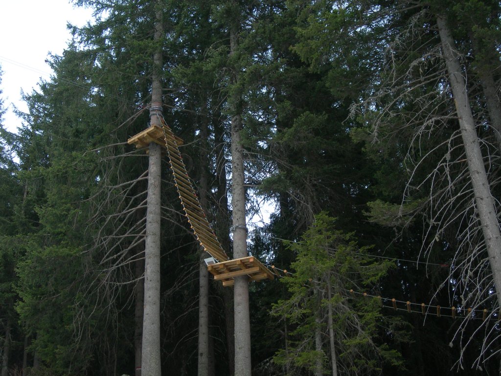 Una passeggiata sugli alberi in completa sicurezza, con 2 percorsi differenziati a seconda delle abilità, con altezze che vanno dai 2 ai 12 metri. Un percorso acrobatico con 30 attività formate da piattaforme, ponti e scale di ogni genere che collegano gli alberi tra di loro.