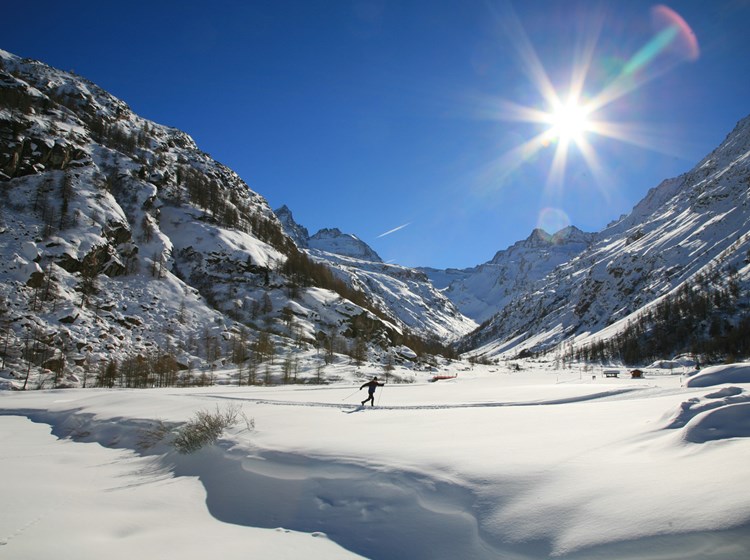 Le piste di fondo di Valsavarenche si snodano tra le località di Dégioz (il capoluogo) e di Pont, ultimo villaggio della valle, a 2.000 metri di altitudine per un totale di 13 km