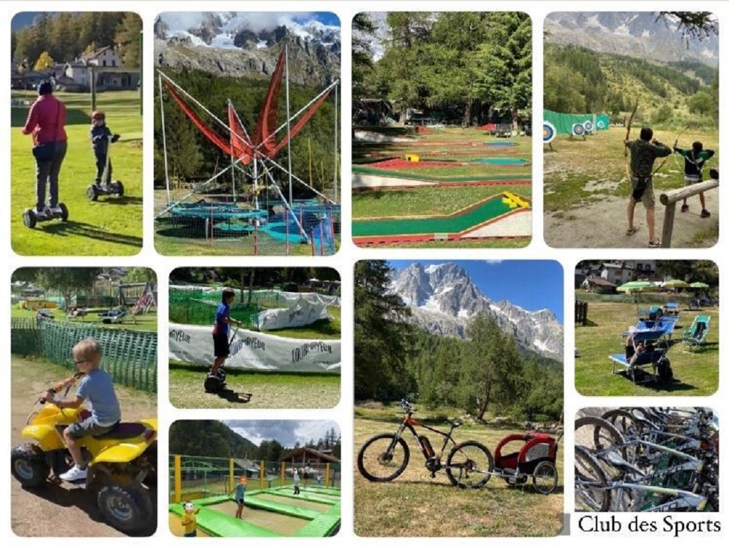 Il parco giochi Club des Sports è un’area sportivo ricreativa situata nello splendido scenario della Val Ferret a Planpincieux dove il Monte Bianco sullo sfondo fa da cornice.