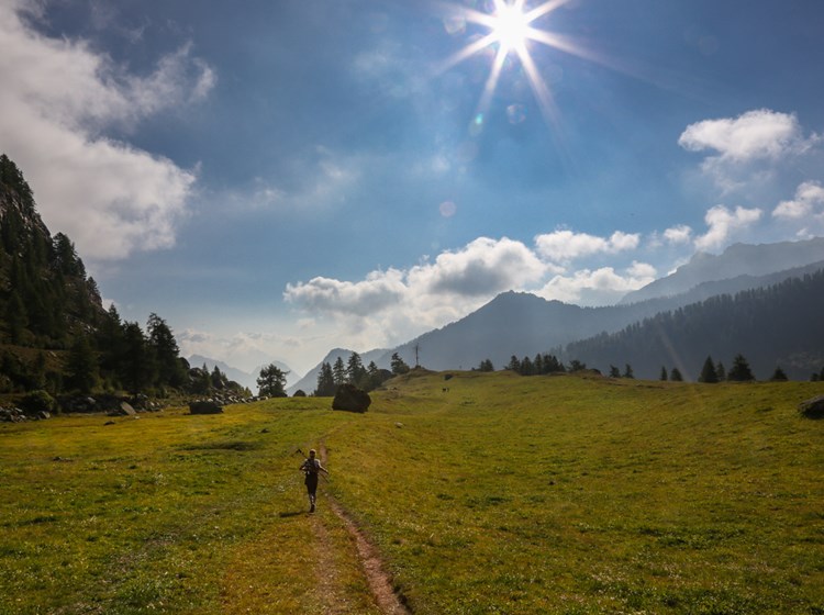 Dal rifugio Dondena si scende sulla strada sterrata, si oltrepassa l’abitato di Dondena e si attraversa il torrente, quindi si prende il sentiero a valle della strada.