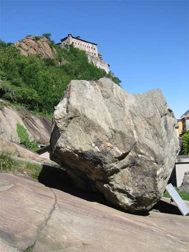 Presso il geosito di Bard è possibile osservare diversi fenomeni geologici: gli esiti di una frana, massi erratici, marmitte dei giganti, dossi montonati oltre ad esempi di arte rupestre.
