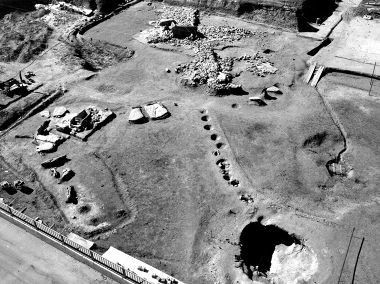 In ordine cronologico è possibile apprezzare: le tracce di un’aratura propiziatoria (fine V millennio a.C.) seguita dalla creazione di pozzi allineati sul cui fondo trovano posto offerte quali macine unite a resti frutti e cereali.
