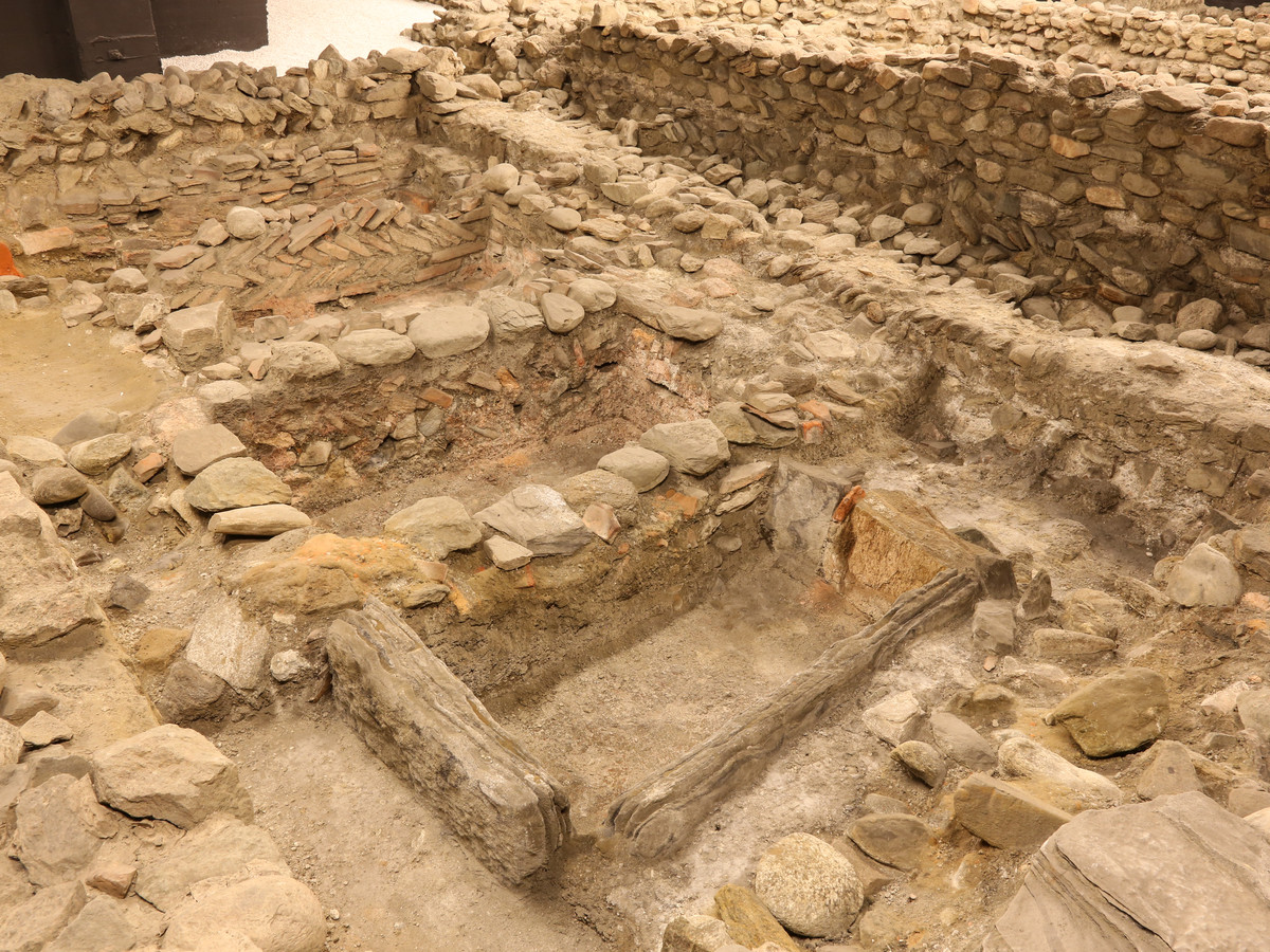 Nell’area troviamo tre mausolei con destinazione funeraria ad aula rettangolare, noti come cellae memoriae , risalenti al IV secolo. Una basilica paleocristiana , la cui datazione va dalla fine del IV a tutto il V secolo, ha evidenti somiglianze con edifici cristiani analoghi sorti su necropoli romane fuori le mura, quali la Chiesa di San Lorenzo e la Chiesa di Santo Stefano.